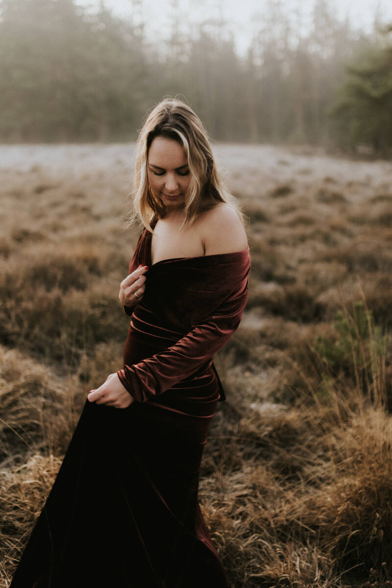 Prachtige jurk voor een zwangerschapsshoot in de herfst!